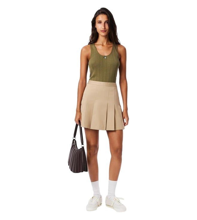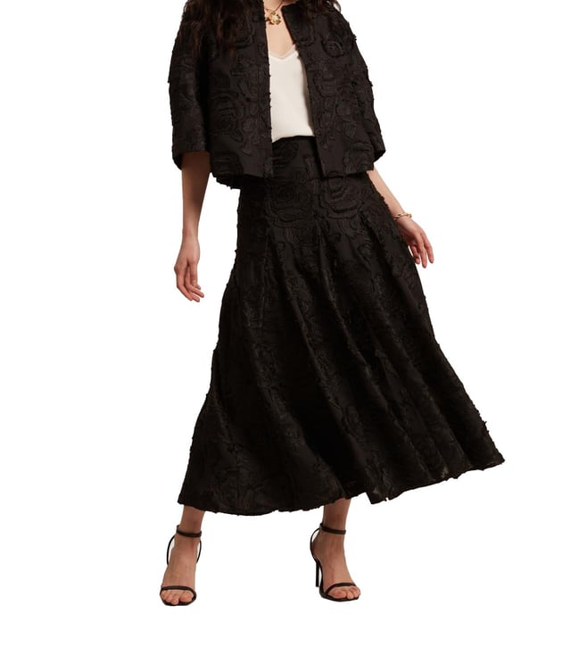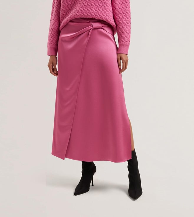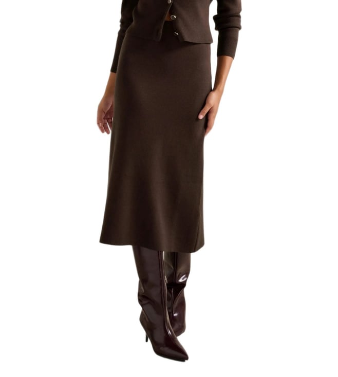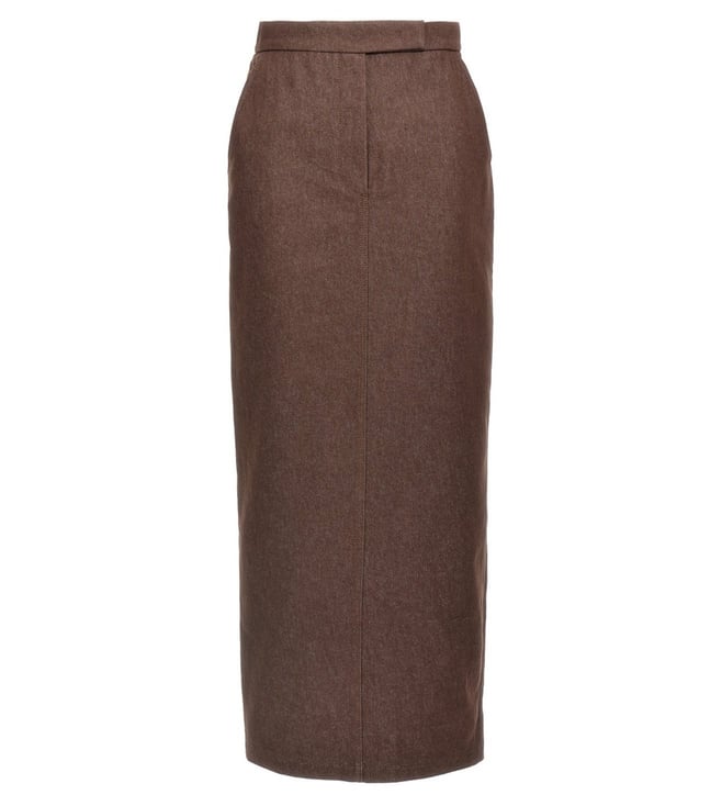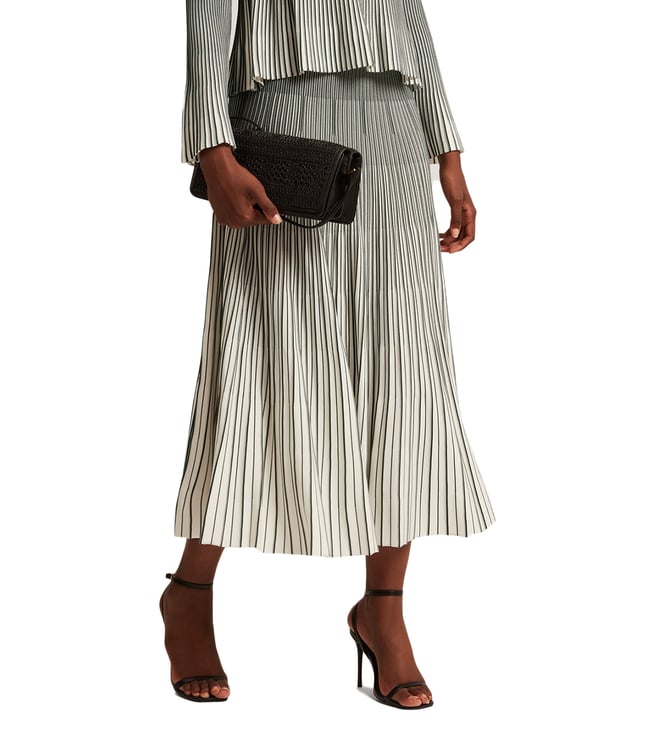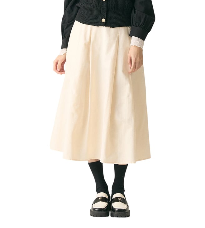 Ivory Pleated Mid Rise Straight Fit Long Skirt