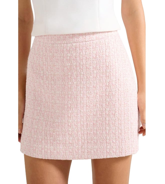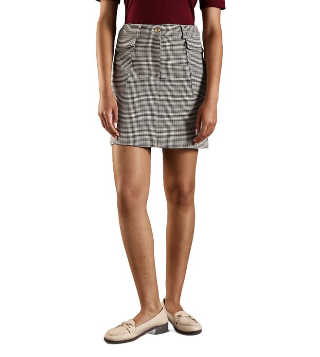 Beige Houndstooth Printed Mid Rise Regular Fit Skirt