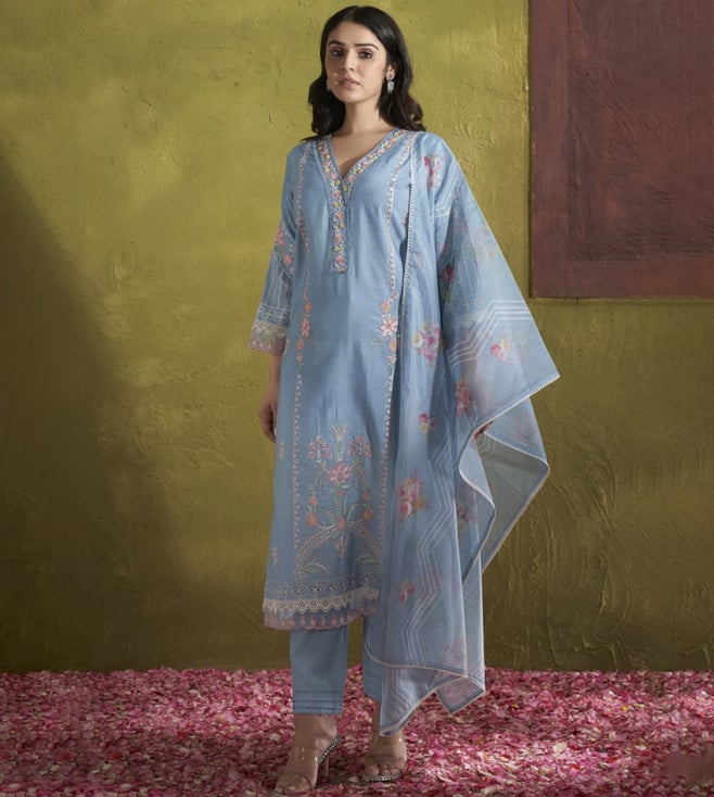 Blue Nadira Embroidered Comfort Fit Pakistani Suit Set