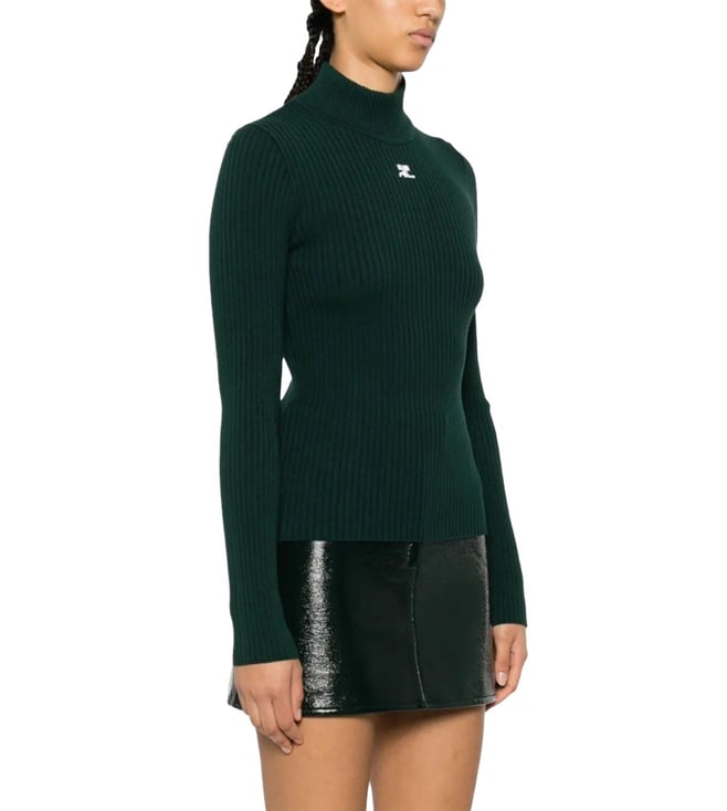 Dark Green Reedition Rib Knit Woven Design Sweater