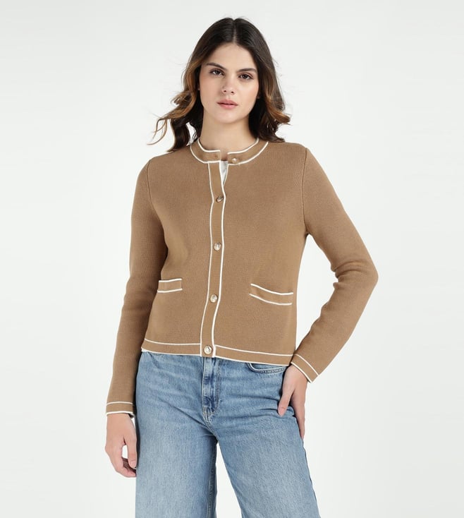 Black Slim Fit Polyester Mock Neck Front-Open Sweater