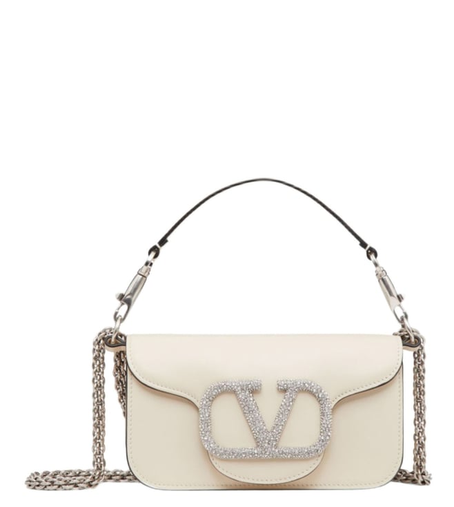 White Quiltie 67 White Crossbody Bag With Vlogo Plaque On The Front And Diamond Quilted Design In