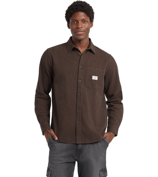 Brown Pocket Checks Regular Fit Shirt