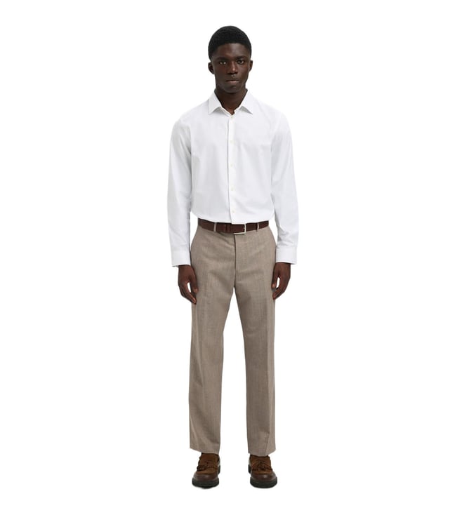 White Cotton Slim Fit Self Pattern Shirt