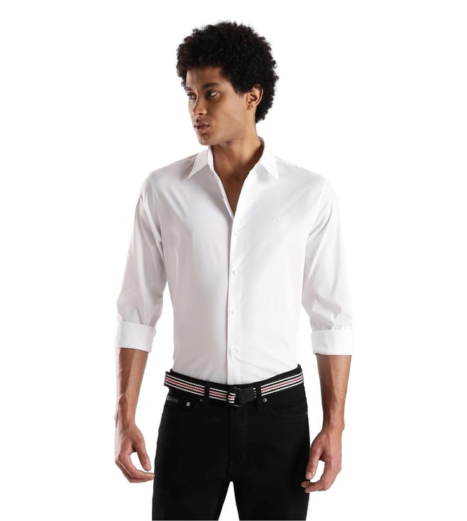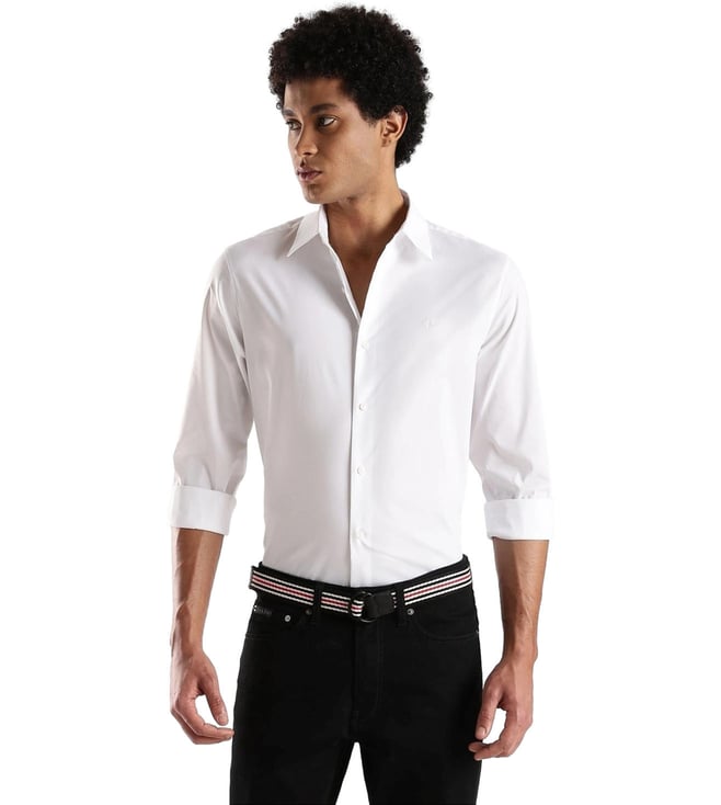 Collins Pure White Solid Spread Collar Regular Fit Basic Shirt