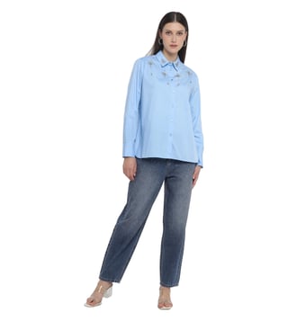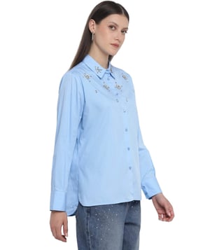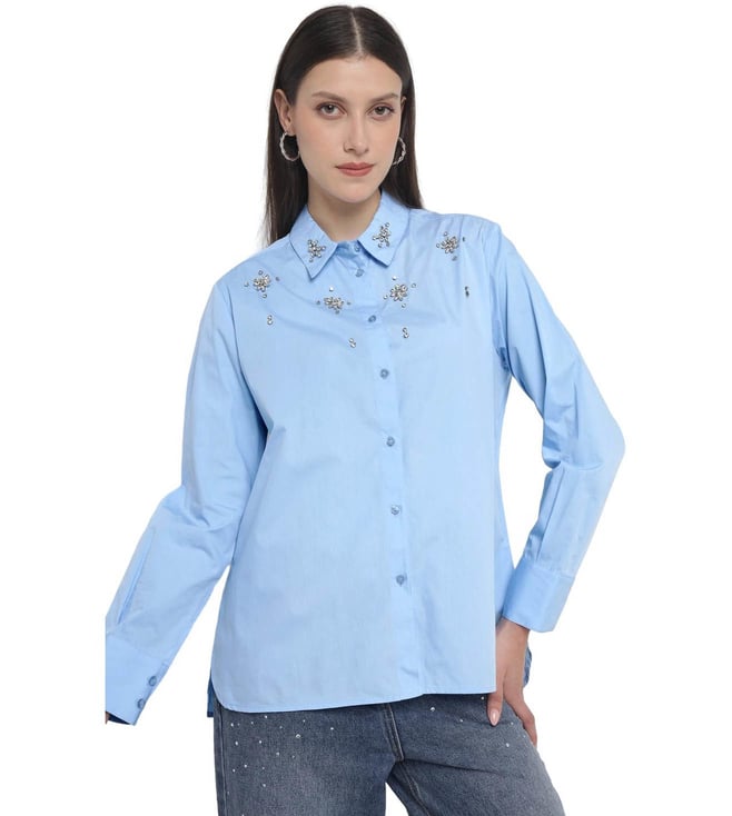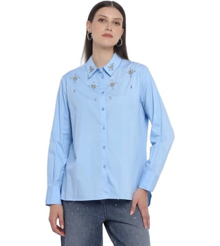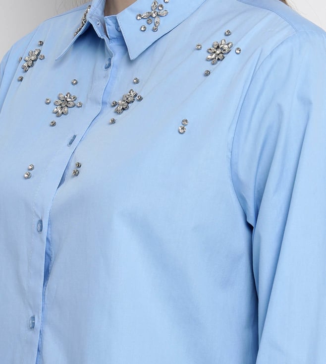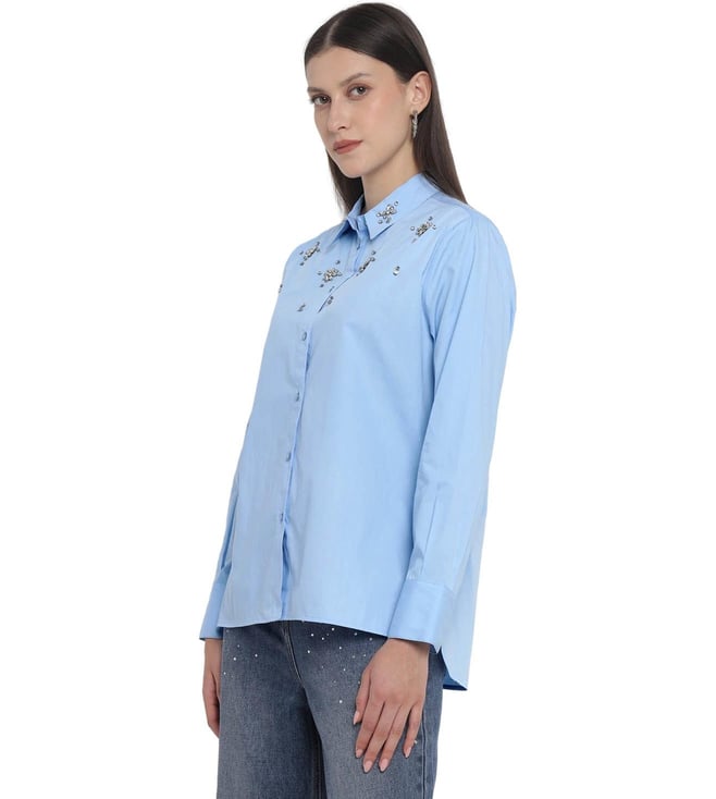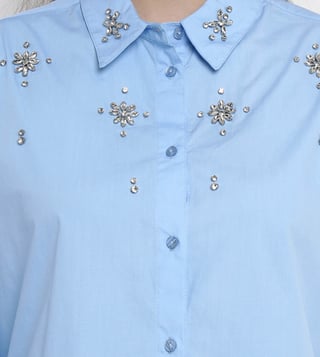 Diana Gallesi Blue Embellished Regular Fit Elegance Shirt
