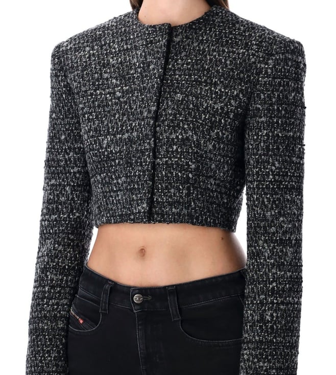 Elevate your style with this chic grey cropped blazer, featuring a timeless tweed pattern. Designed with long sleeves and a sophisticated round neck, it blends 38% polyester, 36% acrylic, 14% cotton, 11% wool, and 1% other fibers for a luxurious feel. Perfect for the modern woman seeking elegance. Products purchased from Darveys are supported exclusively by the warranty/exchange policies of Darveys and its partner boutiques. Brand owners and their channel partners are not responsible for exchange/warranty services for items purchased through Darveys.