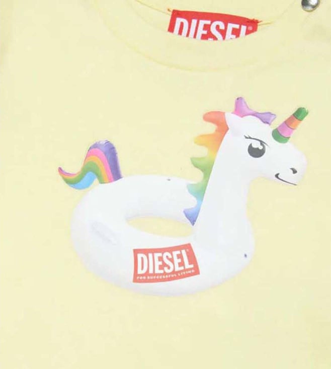 This t-shirt from Diesel Kids features a unicorn print on the front, inside of which is the brand logo and side snap fastening. It comes in a straight fit that gives the required comfort and breathability.