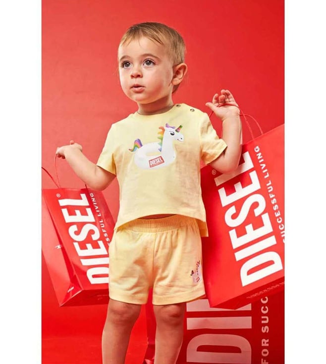 DIESEL Kids Yellow Printed Straight Fit T-Shirt