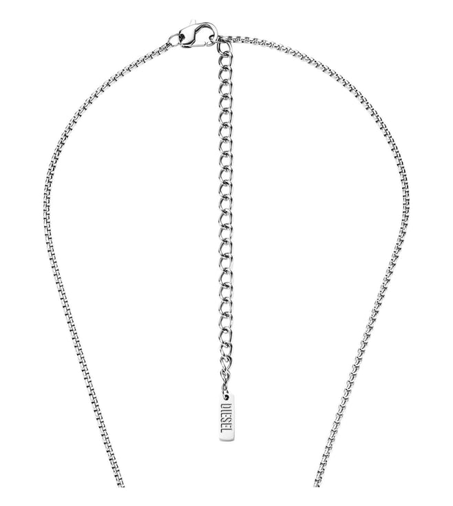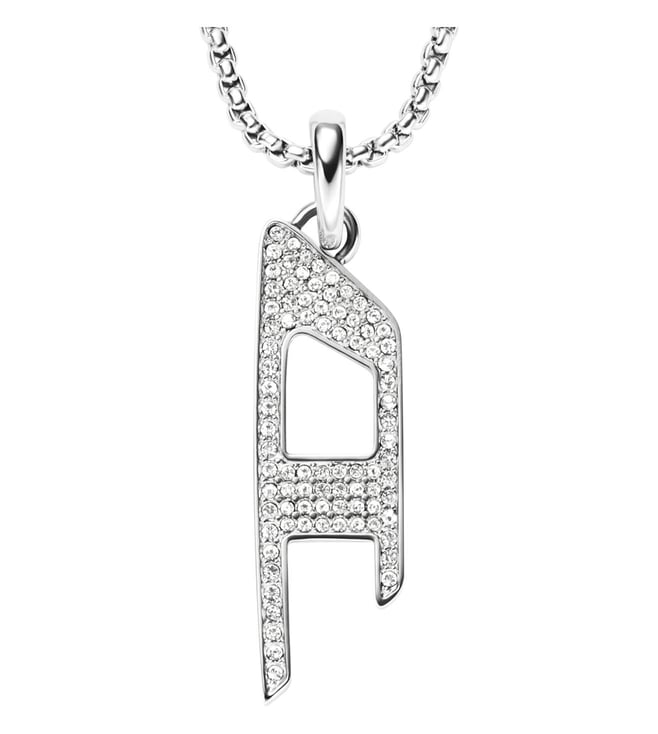 Diesel's silver-tone pendant necklace is crafted from durable stainless steel and features a shimmering D logo pendant accented with glitz. Sleek and modern, this statement piece adds a bold yet refined touch to your everyday accessory collection.