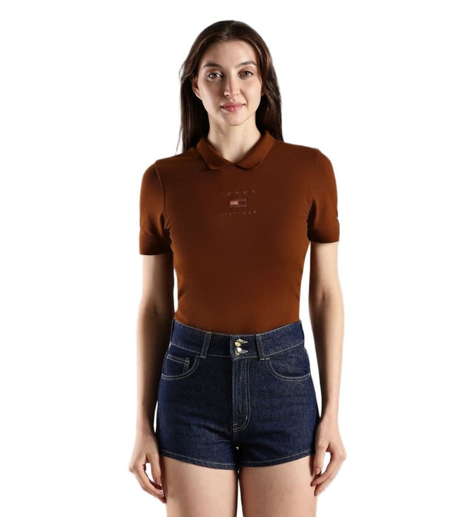 Women Brown Solid Crew Neck Pure Cotton T-Shirt