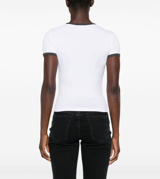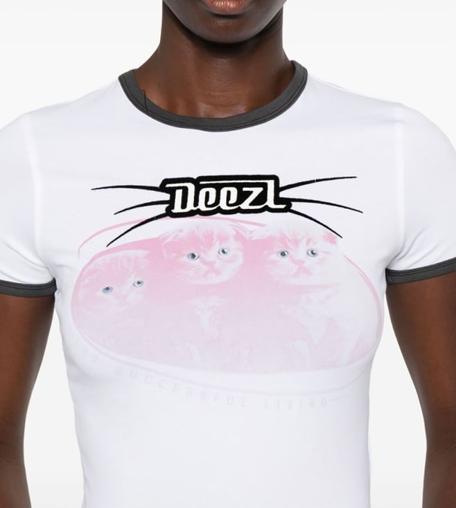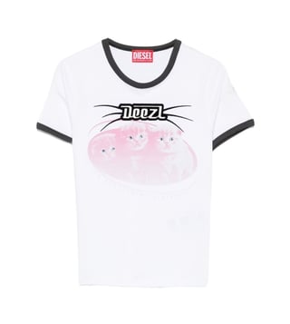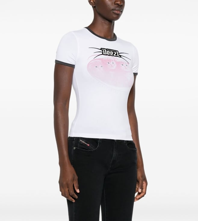 Embrace effortless style with this chic white T-shirt, featuring a captivating graphic pattern that adds a modern twist. Designed with short sleeves and a classic round neck, it offers a perfect blend of comfort and stretch, thanks to its 95% cotton and 5% elastane fabric. Ideal for any casual outing. Products purchased from Darveys are supported exclusively by the warranty/exchange policies of Darveys and its partner boutiques. Brand owners and their channel partners are not responsible for exchange/warranty services for items purchased through Darveys.