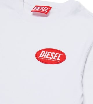 Elevate your little ones wardrobe with the Diesel White Logo Printed Comfort Fit T-Shirt. Crafted from 100 percent cotton, this white t-shirt boasts a signature logo patch for a touch of designer flair. With its breathable and lightweight feel, this timeless essential offers everyday comfort and style. Perfect for any occasion, this Diesel tee is a must-have for fashion-forward boys looking to make a statement effortlessly.