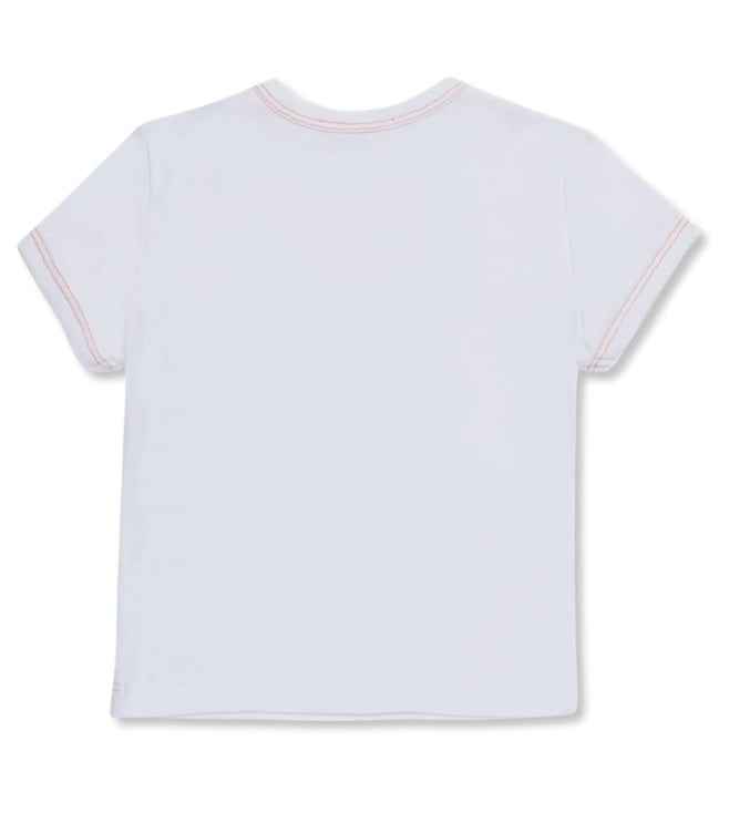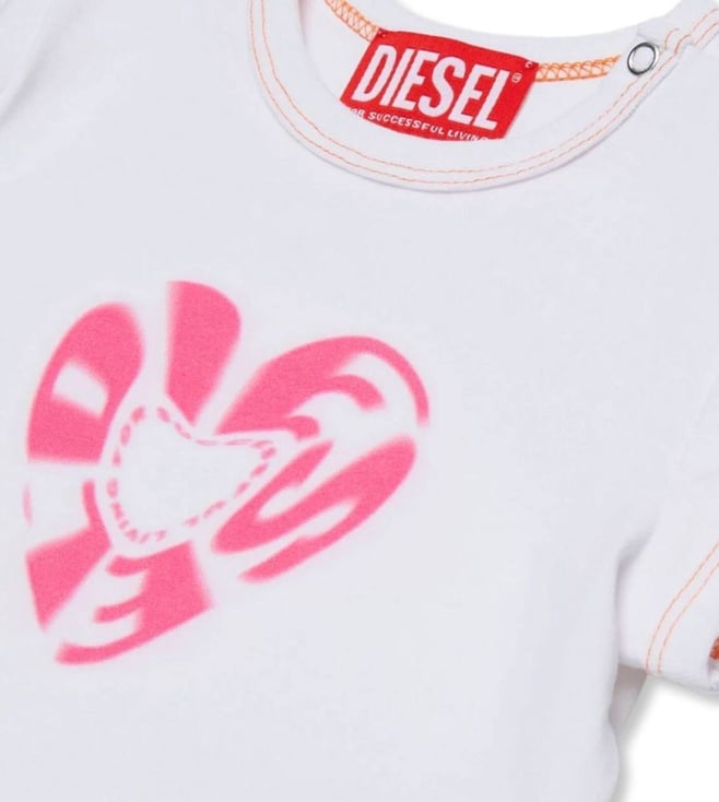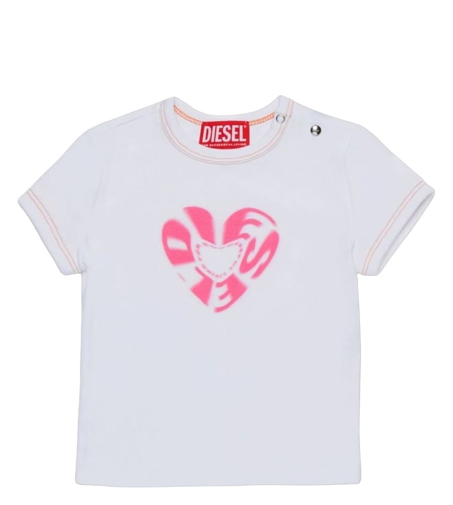 Elevate your little ones style with the Diesel White Logo Printed Comfort Fit T-Shirt. Crafted from a soft and stretchy blend of 93 percent cotton and 7 percent elastane, this baby girls t-shirt offers everyday comfort with a touch of Diesels signature flair. The iconic logo patch adds a trendy touch, making it a must-have in her wardrobe. Perfect for playdates or casual outings, this t-shirt effortlessly combines comfort and style for your little fashionista.