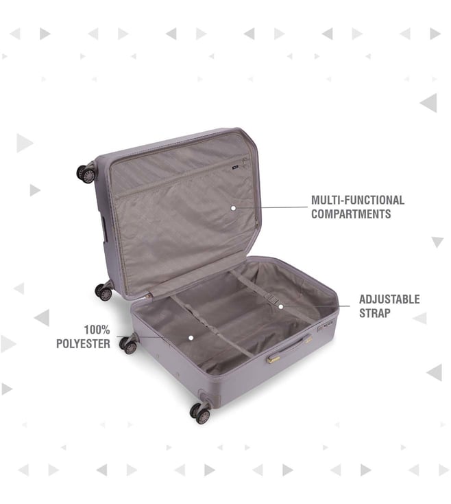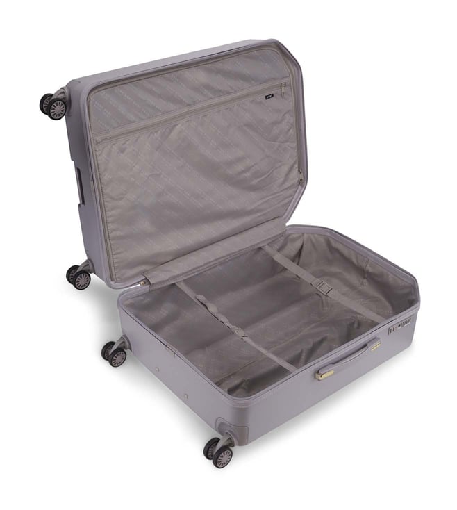 The modern, confident, and Iconic luggage from the house of DKNY. Engage your confidence and elevate your style and impact with this designer luggage. Create an aura of your presence. The Iconic city of New York is about grit, glamour, and style. It is your trusty travel companion and glamorously unique and different in a special way. The grips have luxurious flush fabric grips, stylish iconic enamel logo. The body has a twill weave body fabric, with smooth movements, ABS PC Material, and 100 polyester inner material, which is tenaciously tough and highly desirable.