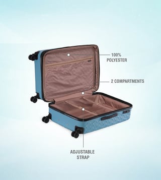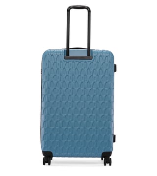 The modern, confident, and iconic aqua large checked luggage from DNA range from the house of Dkny. Engage your confidence and elevate your style and impact with this designer luggage. The body is of ABS diamond texture which is scratch-resistant, logo embossed, smooth movements, polyester material, tenaciously tough and highly desirable. It has luxurious comfort grips, security zippers, and is water resistant. The 360-degree all-way wheels ensure gentle and silent moves as a breeze. Create an aura of your presence.