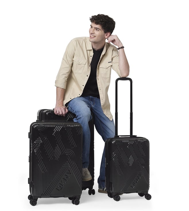 The Dkny city scape 31 inches large hard luggage in black is the ideal travel companion for those who need ample storage space without compromising on style or durability. Made from abs pc film, this hard shell luggage is built to withstand the demands of frequent travel, offering exceptional protection for your belongings. The sleek frosted texture and embossed Dkny logo add a modern, luxurious touch to the design. Inside, the luggage features a practical layout with 100 percent polyester lining for a smooth and secure fit for your items.