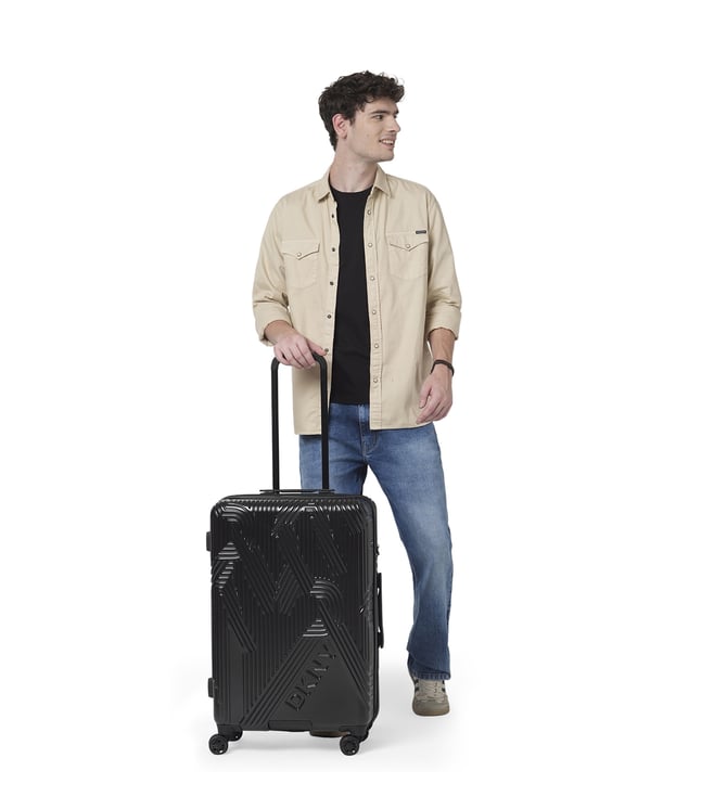 Dkny Black CITY SCAPE Textured Large Hard Sided Expandable Checked Luggage