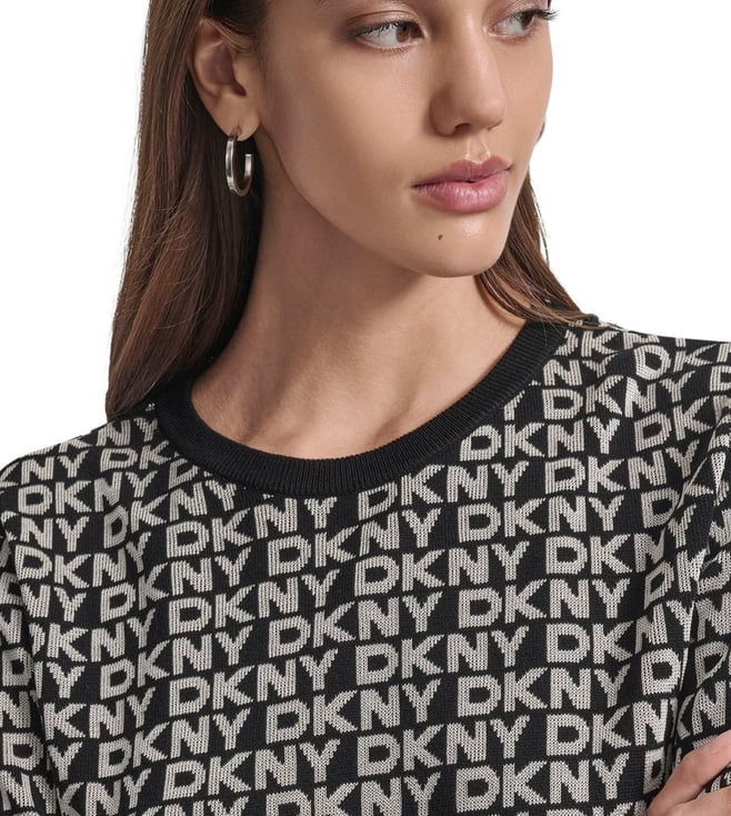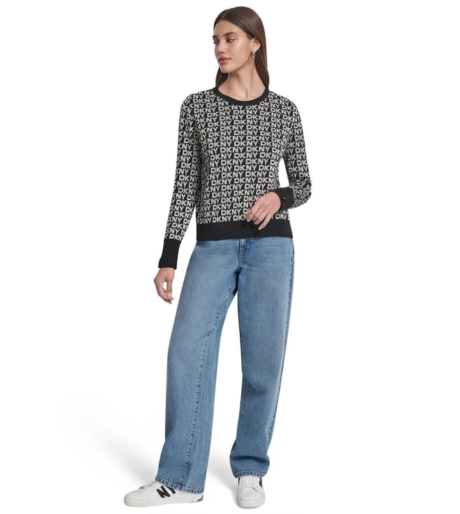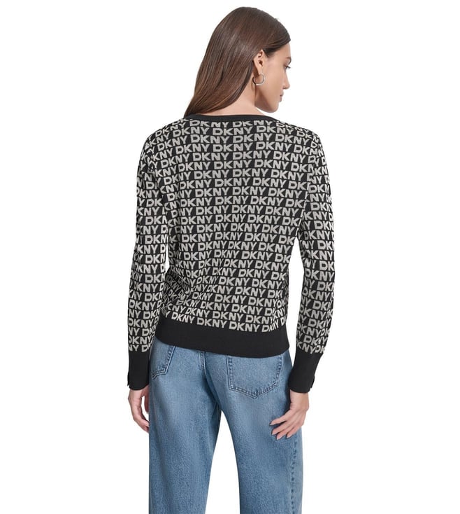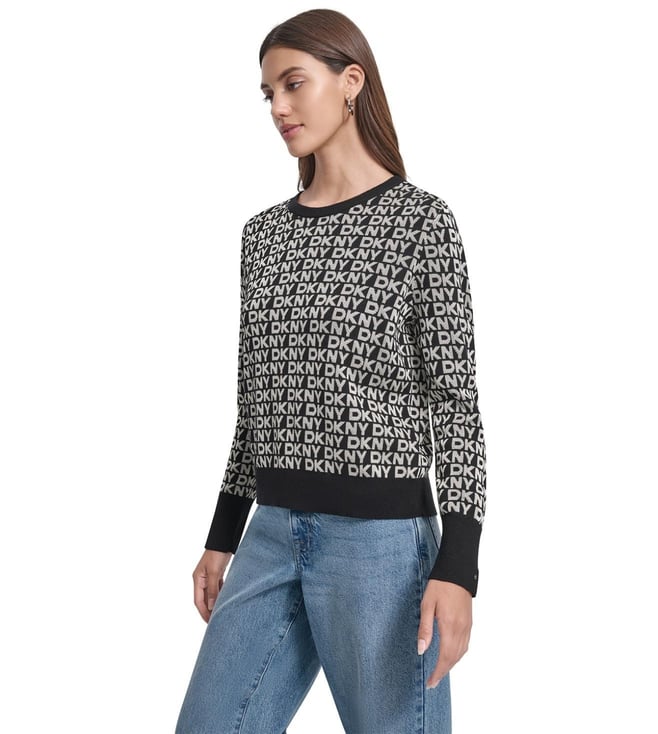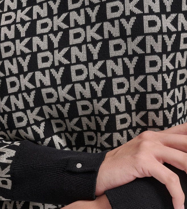 Dkny Black-Eggnog Regular Fit Printed Long Sleeves Sweater