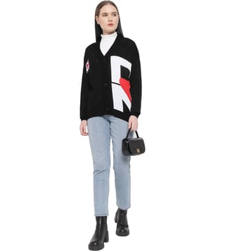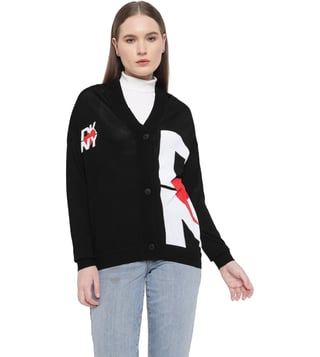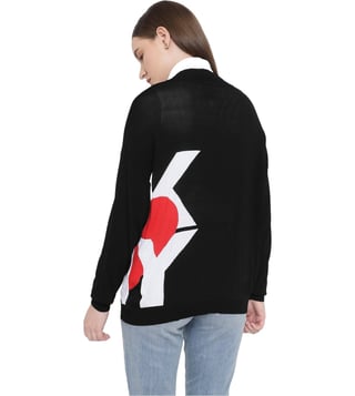 Elevate your everyday style with the DKNY Black Heart of NY Printed Relaxed Fit Cardigan. This versatile piece combines comfort and chic with its relaxed fit and modern design featuring the iconic DKNY heart logo. Perfect for layering over any outfit, this cardigan adds a touch of sophistication to your look while keeping you cozy and on-trend. Whether you're heading to the office or a casual weekend brunch, this cardigan is a must-have wardrobe staple for fashion-forward individuals looking for effortless style.
