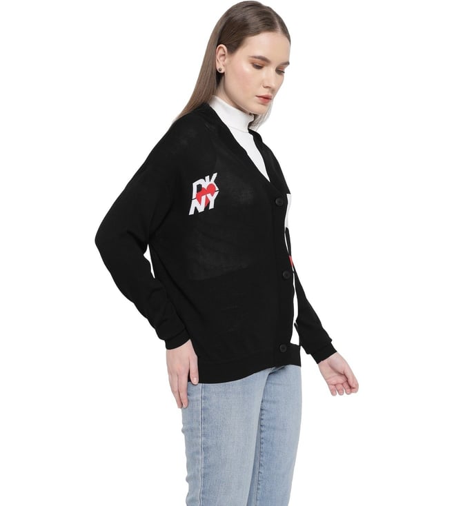 Dkny Black Heart Of Ny Printed Relaxed Fit Cardigan