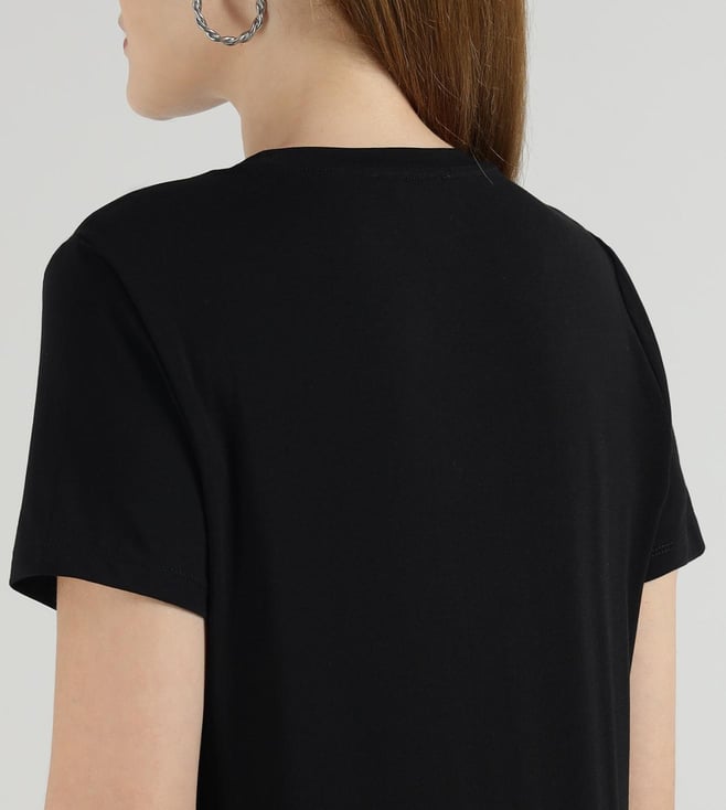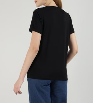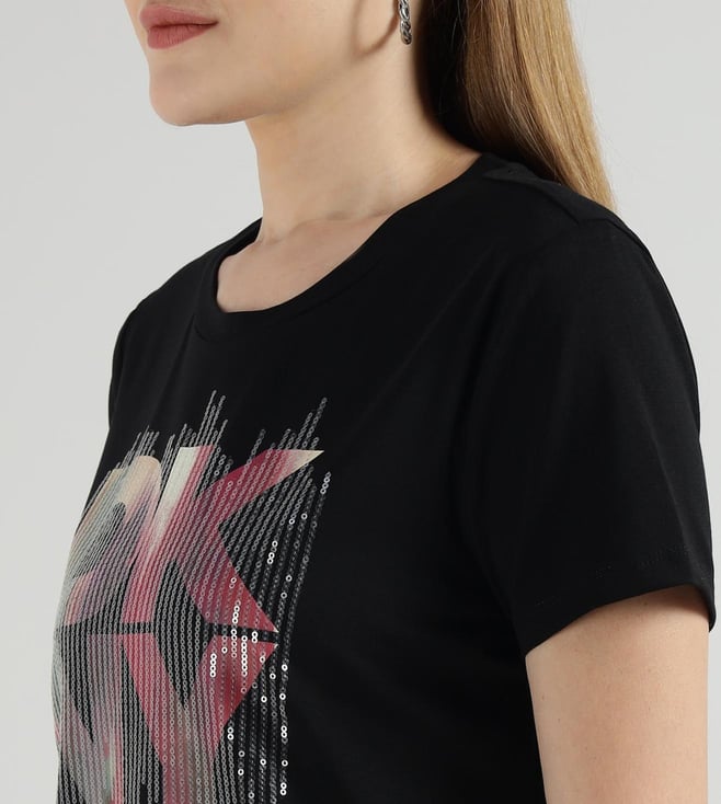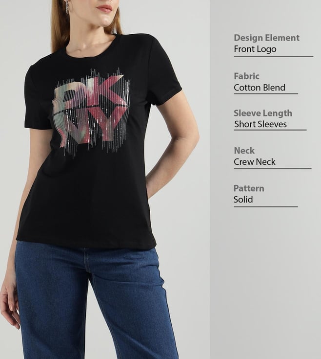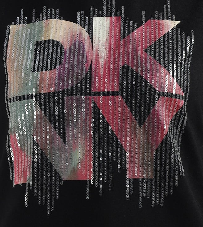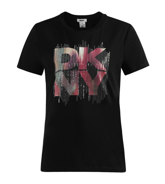 The DKNY Black Printed Stack Logo T-shirt is a bold statement piece for any wardrobe. Crafted from premium cotton fabric, this tee offers a soft, breathable feel, perfect for all-day wear. The striking black color serves as a canvas for the dynamic stack logo pattern, adding a modern edge to your look. Designed with a classic crew neck and short sleeves, it features a pull-on closure for effortless style. Ideal for any gender, this versatile piece seamlessly blends comfort with contemporary flair.