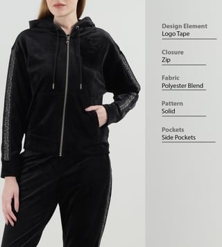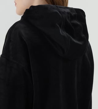 Embrace the allure of understated elegance with this black hooded sweatshirt, designed for the modern woman. Its regular fit drapes effortlessly, offering both comfort and style. Crafted from a luxurious blend of 95% polyester and 5% elastane, it promises a soft touch and subtle stretch. The solid pattern exudes sophistication, while long sleeves and a cozy hood provide warmth and versatility. Perfect for any occasion, this sweatshirt is a timeless addition to your wardrobe, blending functionality with chic flair.