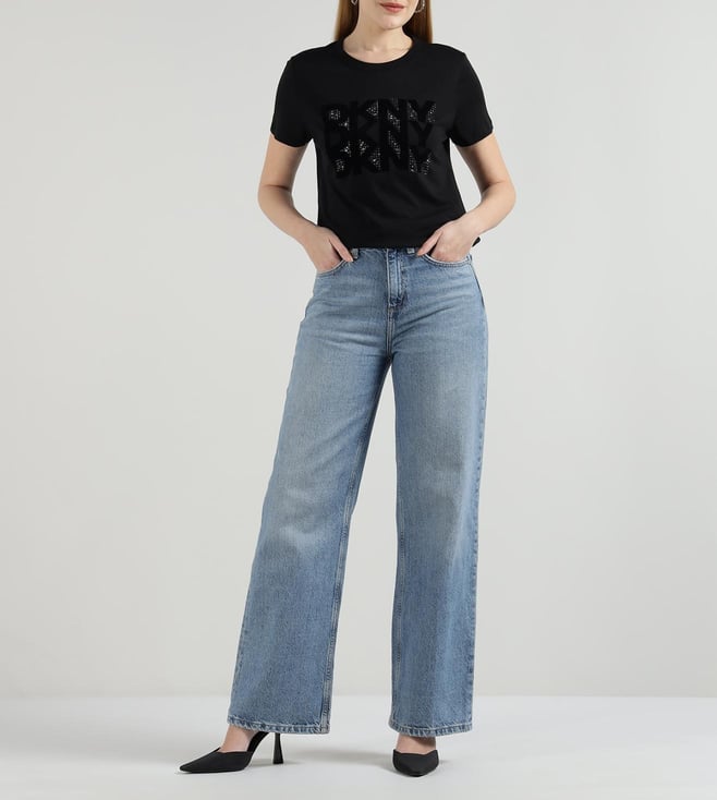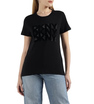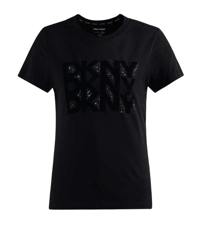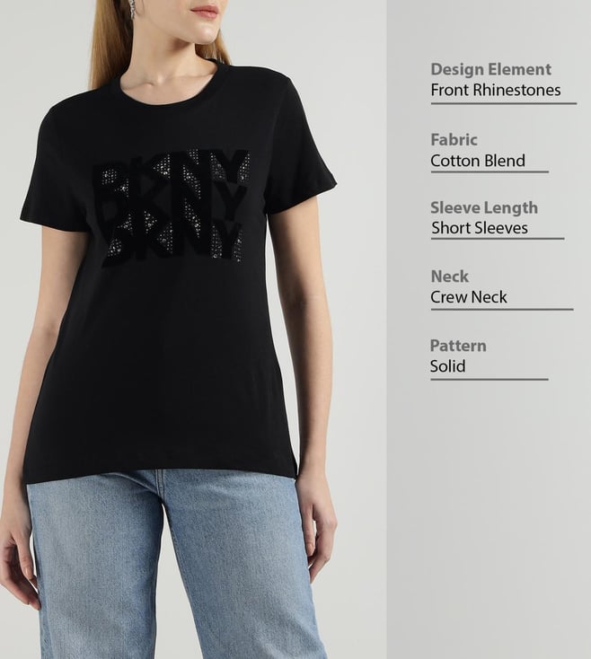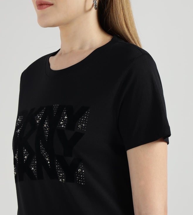 DKNY Black Rhinestone Logo T-Shirt