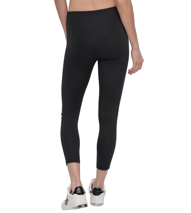 Elevate your wardrobe with the DKNY Women Black blended knitted high Rise solid Slip on Skinny fit Legging. Crafted for comfort and style.This leggings feature a high rise waist for a flattering fit and a sleek skinny silhouette. The slip-on design makes them easy to wear, while the black blended fabric offers a soft, stretchy feel for all-day comfort. Perfect for any occasion.This leggings are a versatile staple that will effortlessly take you from day to night in chic, sophisticated fashion. Upgrade your look with these must-have leggings from DKNY.