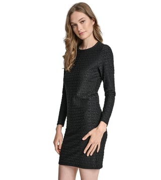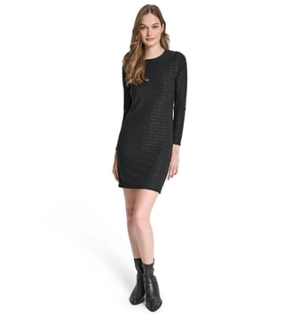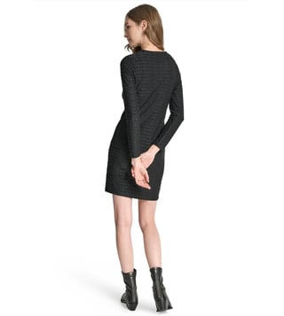 Dkny Black Skinny Fit Solid Long Sleeves Dress