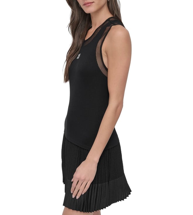 Elevate your activewear with the DKNY Black Slim Fit Logo Tank Top. Crafted for both style and performance, this tank top features a sleek black design with a slim fit silhouette that flatters your shape. The iconic DKNY logo adds a touch of urban chic, making it perfect for workouts or casual wear. With its breathable fabric, this tank top keeps you comfortable and cool throughout your day. Upgrade your wardrobe with this versatile piece that effortlessly combines fashion and function.