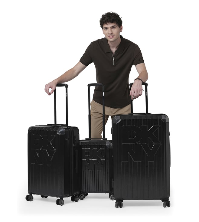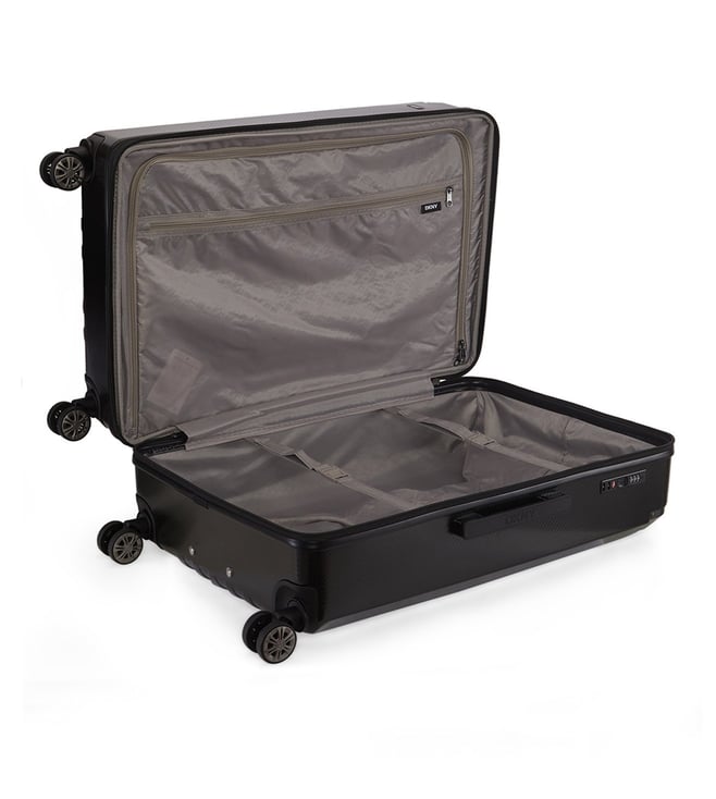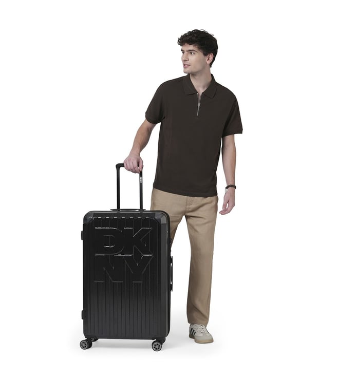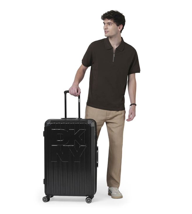 Dkny Black STACK LOGO Textured Large Hard Sided Checked Luggage
