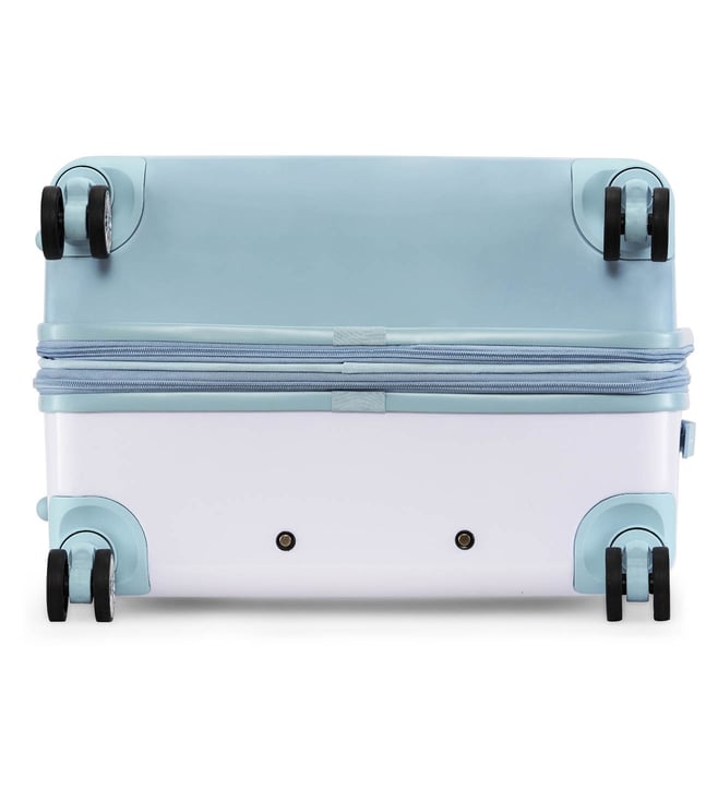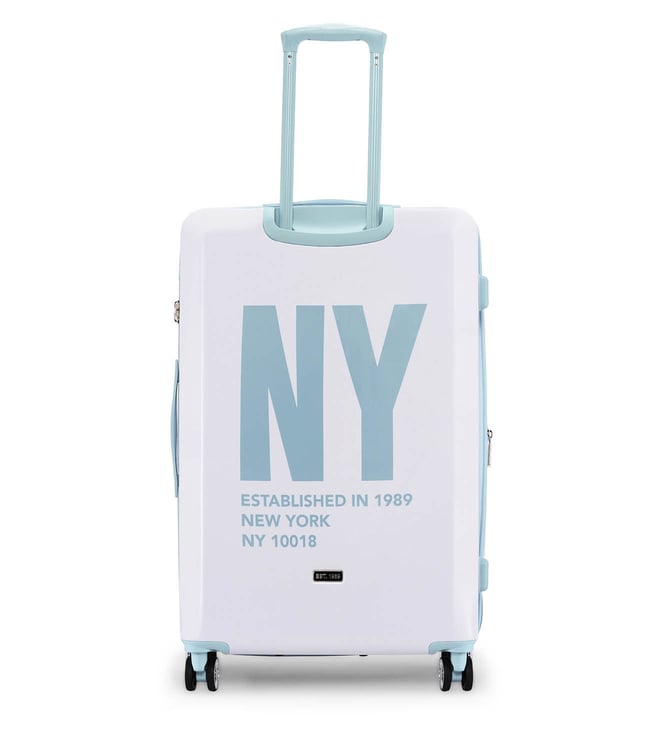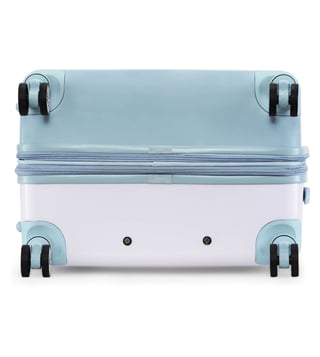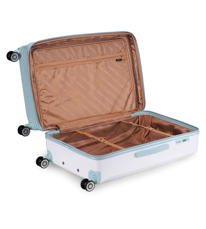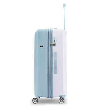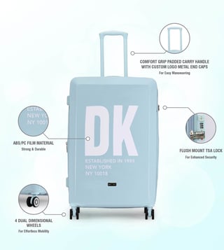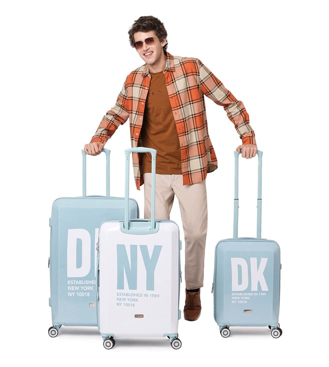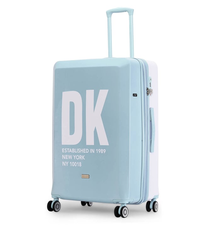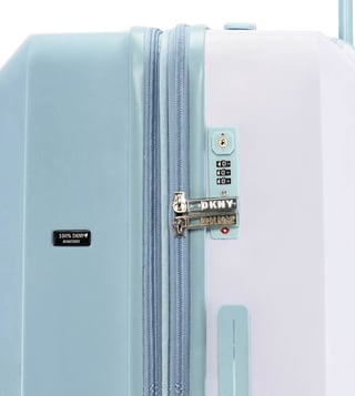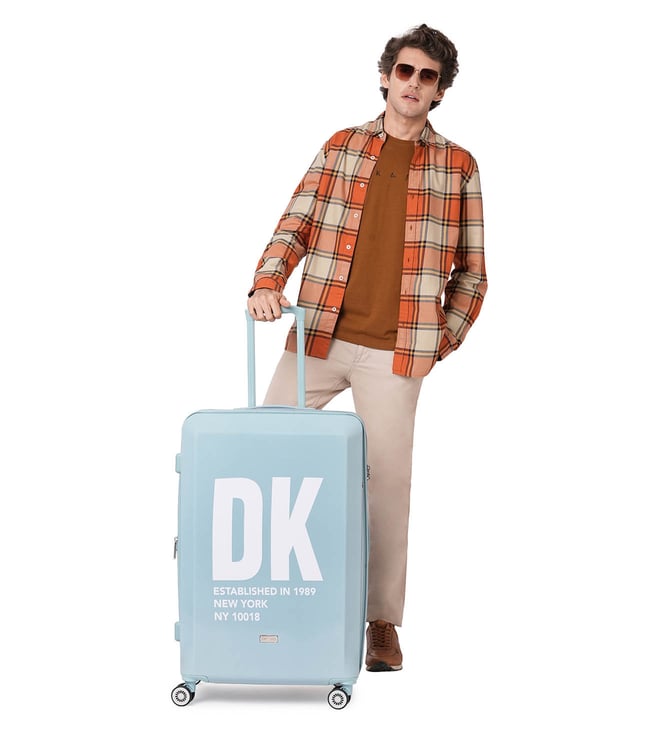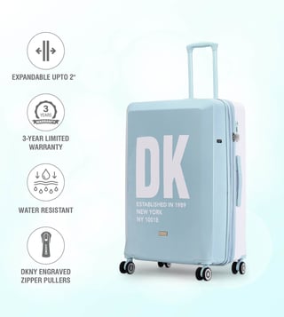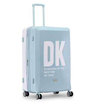 The modern, confident, and iconic sea foam large checked luggage from BOLD range from the house of Dkny. Engage your confidence and elevate your style and impact with this designer luggage. The body is of ABS twill textured, logo embossed, smooth movements, polyester material, tenaciously tough and highly desirable. It has luxurious comfort grips, security zippers, and is water resistant. The 360-degree all-way wheels ensure gentle and silent moves as a breeze. Create an aura of your presence. It is your trusty travel companion and glamorously unique and different in a special way.