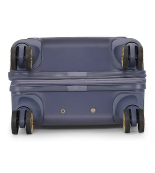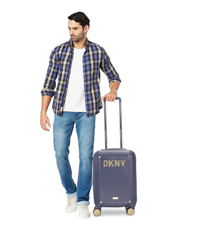 Classic touch the modern, confident, and iconic cabin trolley from the house of DKNY. Engage your confidence and elevate your style and impact with this designer luggage. The body is of abs with geometric angled corner design, smooth movements, polyester material, tenaciously tough and highly desirable. The grips have luxurious flush fabric grips, stylish iconic enamel logo, seal in dryness, and is water resistant. The 360-degree all-way wheels ensure gentle and silent moves as a breeze. Create an aura of your presence.