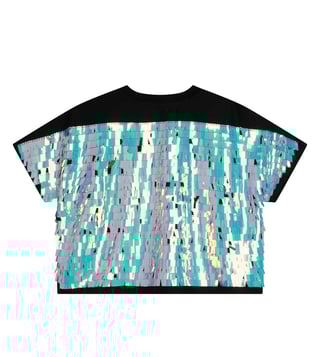 This DKNY top is something out of this world, literally. Its reflective front with multicolored strips is sewn onto the front and back, making it stand out in the dark. You know that your kid is safe and stylish with this top.