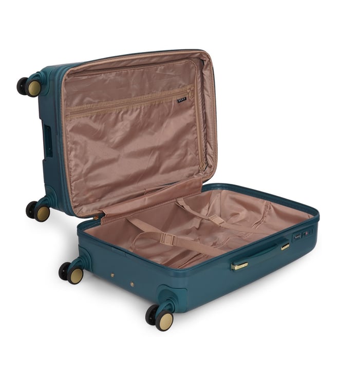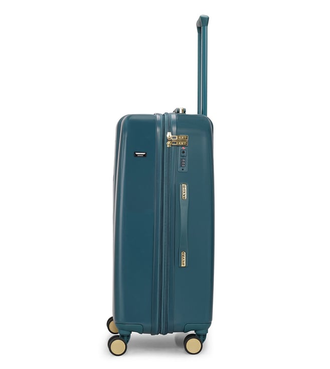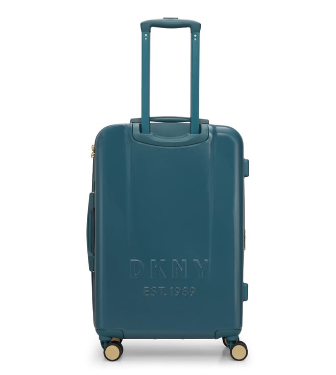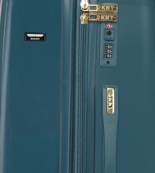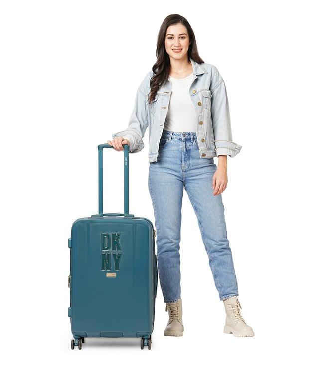 New era the modern, confident, and iconic medium trolley from the house of DKNY. Engage your confidence and elevate your style and impact with this designer luggage. The body is of abs with geometric angled corner design, smooth movements, polyester material, tenaciously tough and highly desirable. The grips have luxurious flush fabric grips, stylish iconic enamel logo, seal in dryness, and is water resistant. The 360-degree all-way wheels ensure gentle and silent moves as a breeze. Create an aura of your presence.