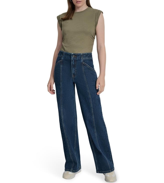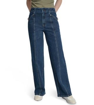 Regular fit design meets a washed blue shade making these jeans easy to style and in trend. Built with button and zipper closure along with five-pocket detailing they keep the classic denim look intact. Cotton spandex fabric offers a soft feel while staying durable. A go-to pair for everyday wear with tees or shirts.