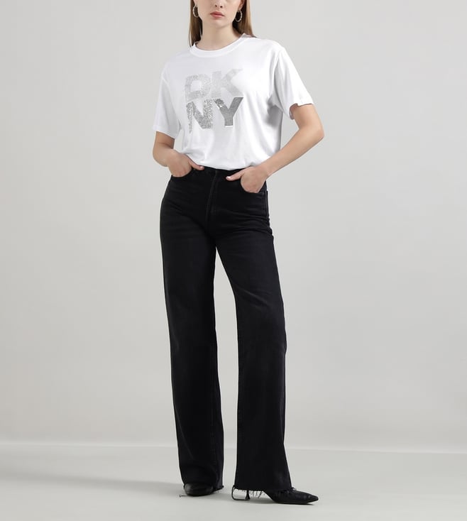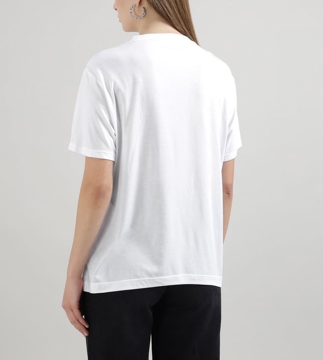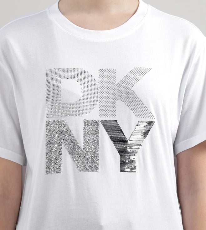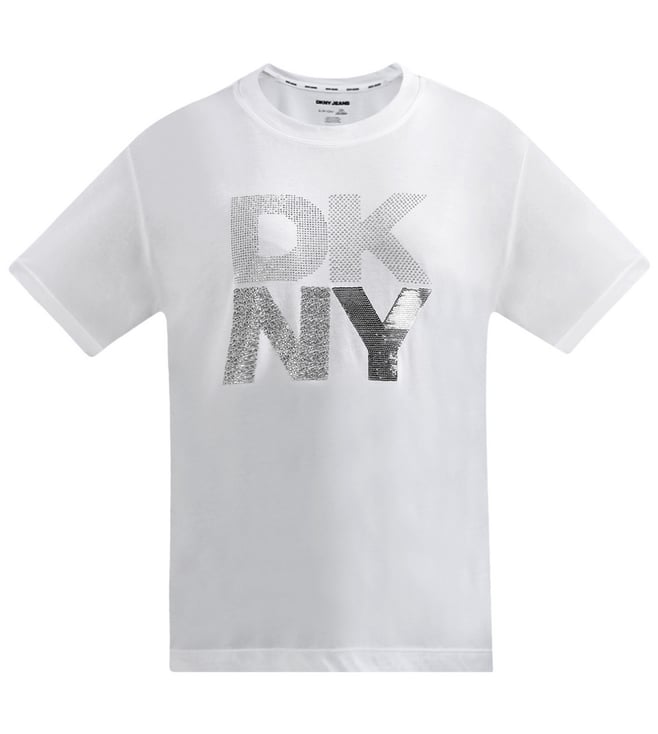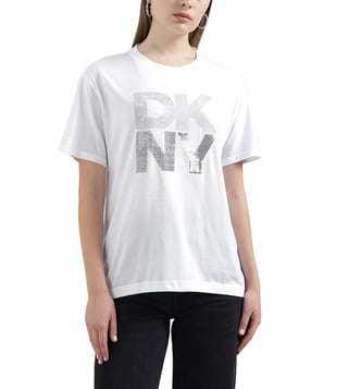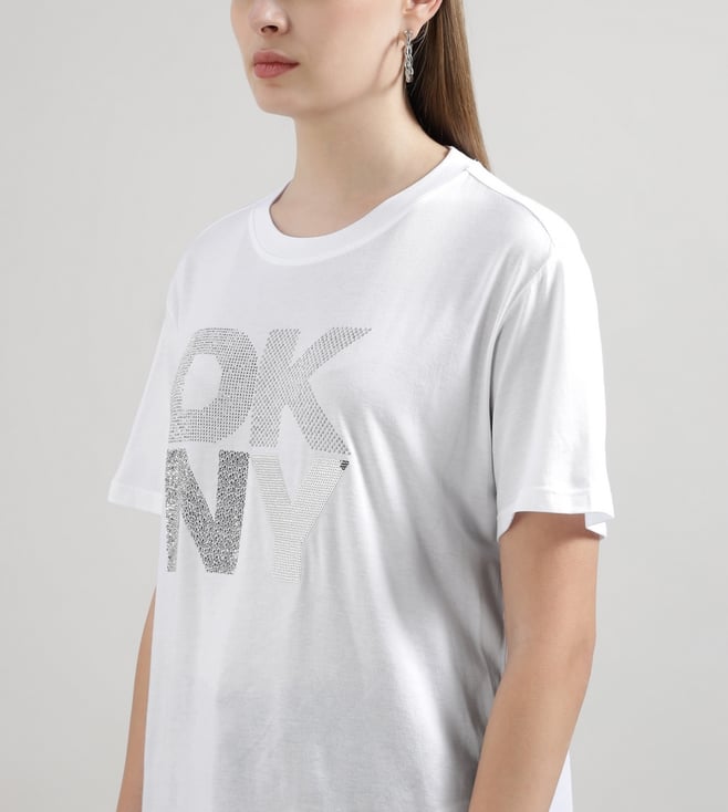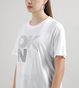 Elevate your wardrobe with this chic white T-shirt, designed for the modern woman who values both comfort and style. Crafted from a luxurious blend of 60% cotton and 40% modal, this regular-fit tee offers a soft, breathable feel. The round neck and short sleeves provide a classic silhouette, while the embellished pattern adds a touch of glamour. Perfect for any occasion, this versatile piece effortlessly transitions from day to night, ensuring you always look your best.