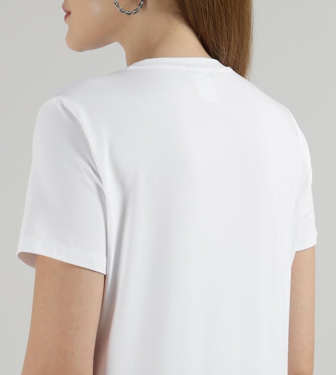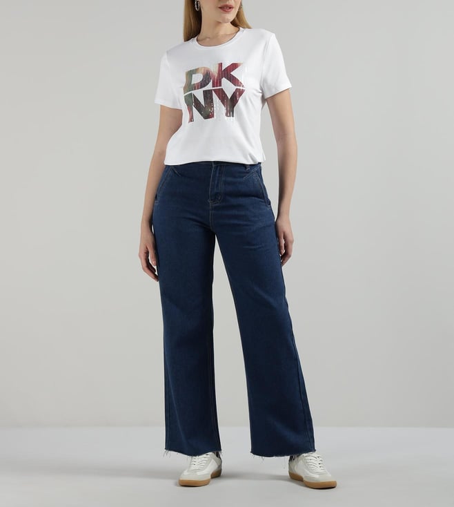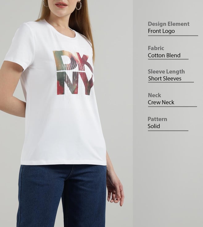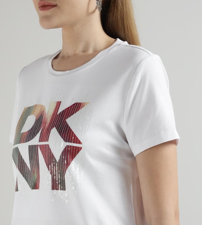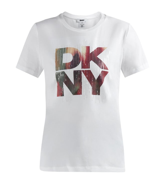 Elevate your casual wardrobe with the DKNY White Printed Stack Logo T-shirt, a perfect blend of style and comfort. This unisex tee features a dynamic pattern that effortlessly captures attention, showcasing the iconic DKNY logo in a bold, stacked design. Crafted from premium, breathable fabric, it ensures all-day comfort and durability. The classic crew neck closure adds a timeless touch, making it a versatile piece for any occasion. Ideal for those who appreciate modern fashion with a touch of urban flair.