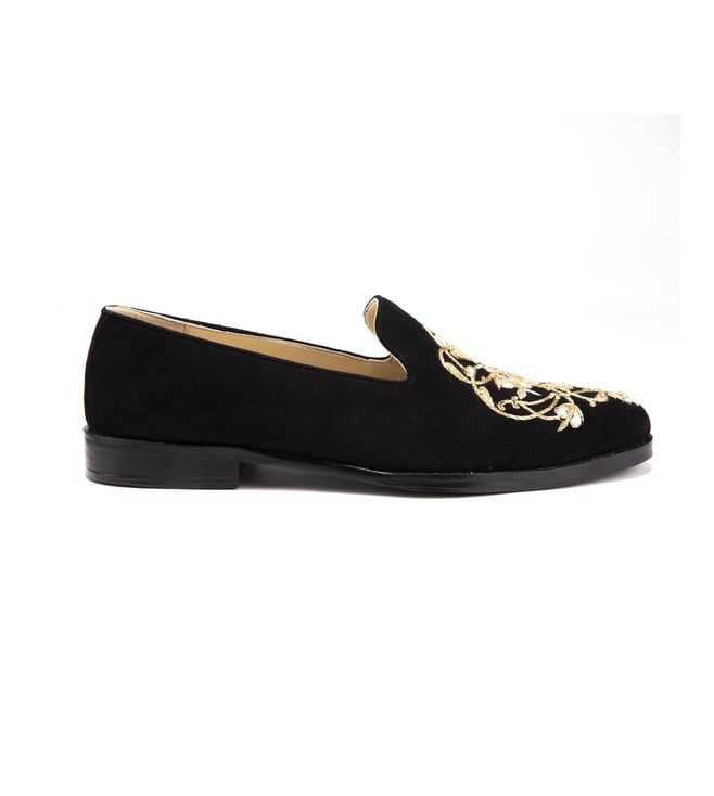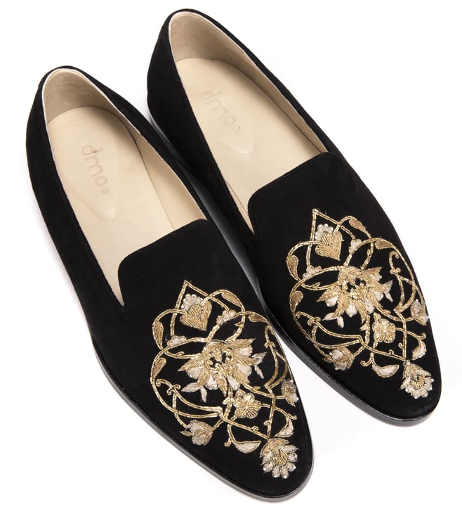 Incredibly elegant, these zardosi Loaferss are the dreamiest shoes ever. Handcrafted by artisans these beauties are an essential accessory for the wedding season. The beauty of detailed zardosi on the Motivo Nero Zardozo complements a variety of looks, making them a perfect choice for the groom, groomsmen, and all our versatile dots.The pride of the Motivos lies in its ability to transform from a vintage Loafers to a modern classic.Leather type: Black Suede Sole: Handmade antiskid leather Lining: Sheep leather Insole: Memory cushion