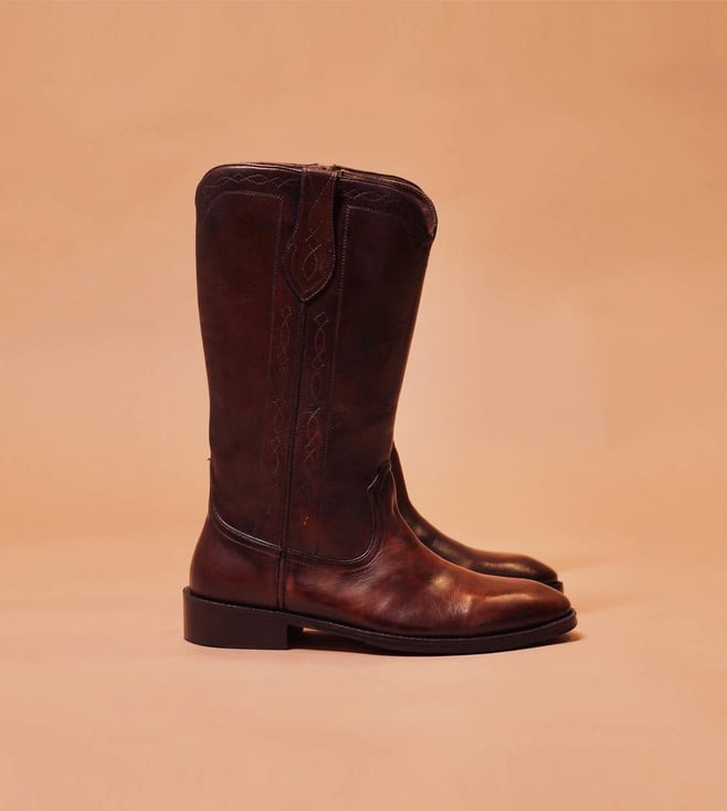 Step into the world of modern luxury with the 'Sprazzo Mucco,' a bold fusion of the classic cowboy boot and the sleek Chelsea boot. Featuring a standard 2-inch heel and crafted from premium leather in a rich, dark brown dual-tone finish, this hybrid boot redefines contemporary footwear. With its distinctive silhouette, the 'Sprazzo Mucco' effortlessly combines rugged cowboy aesthetics with the clean lines of a Chelsea boot, making it the perfect choice for the modern trendsetter.