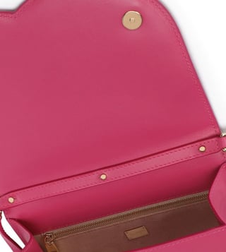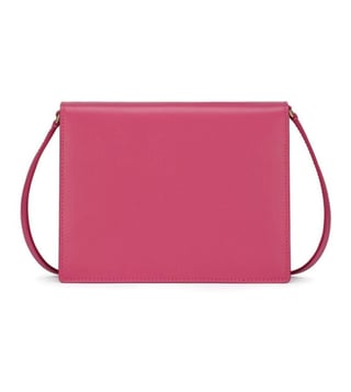 Pink leather embossed-logo crossbody from Dolce&Gabbana featuring pink, leather, embossed logo to the front, adjustable shoulder strap, foldover top with magnetic fastening, gold-tone hardware, main compartment and internal zip pocket. Lining: polyester 56 percent, polyurethane 16 percent, leather 10 percent, rayon 5 percent, nylon 2 percent, elastane 1 percent