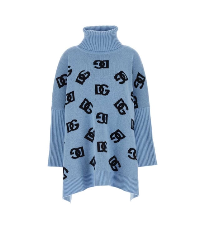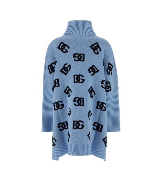 Dolce&GabbanaDOLCE & GABBANA Blue High Collar Wool Printed Poncho