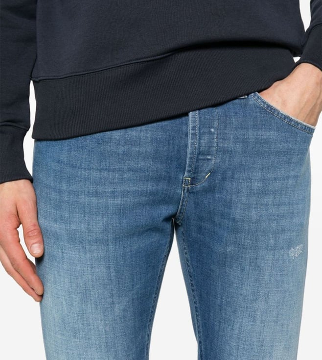 Elevate your style with the Dondup Blue Faded Straight Fit Jeans. Button closure zip fly belt loops multiple pockets ribbed details Crafted for durability and comfort. Products purchased from Darveys are supported exclusively by the warranty/exchange policies of Darveys and its partner boutiques. Brand owners and their channel partners are not responsible for exchange/warranty services for items purchased through Darveys.