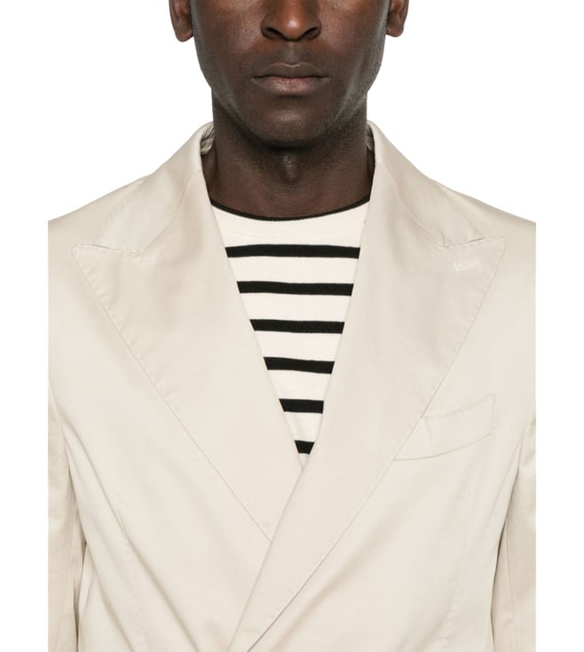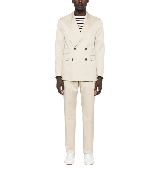 Elevate your style with the Doppia Beige Aaradeo Tailored Fit Blazer & Aantioco Trousers Suit. Light beige doublebreasted button fastening jetted chest pocket front flap pockets buttoned cuffs. Products purchased from Darveys are supported exclusively by the warranty/exchange policies of Darveys and its partner boutiques. Brand owners and their channel partners are not responsible for exchange/warranty services for items purchased through Darveys.