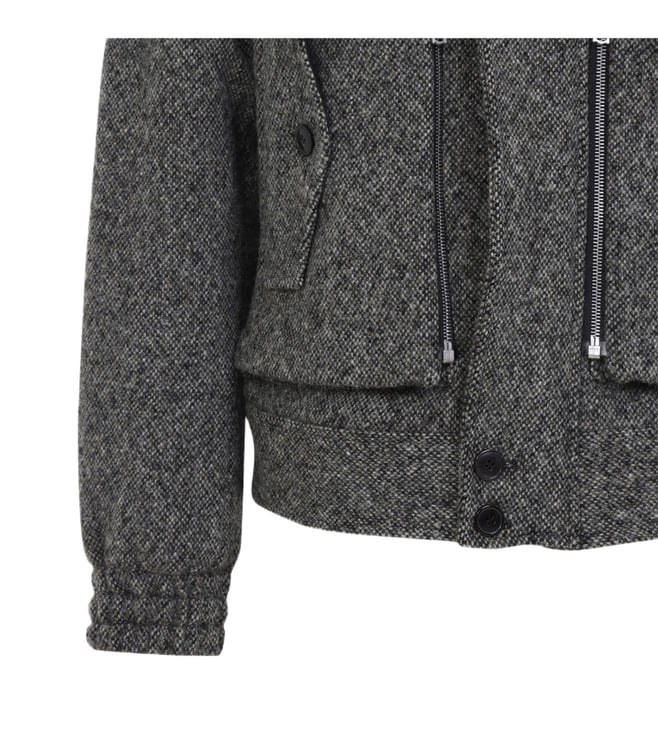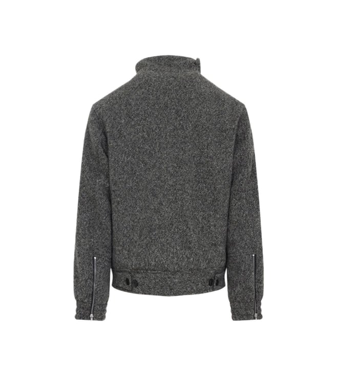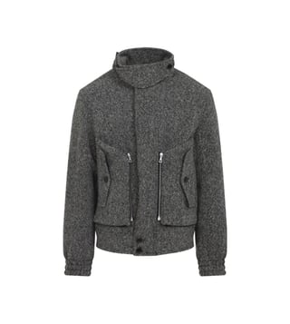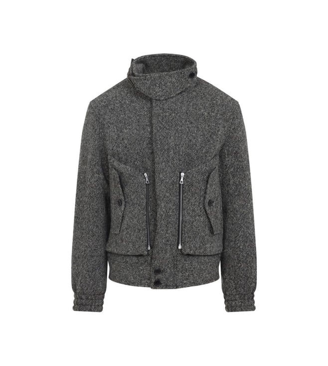 Gray wool venezia jacket by dries van noten. Made of wool and viscose. Stand-up collar with side button closure, concealed front closure, front zip closure, side flap pockets with buttons, long sleeves, elastic cuffs, straight hem, . Products purchased from Darveys are supported exclusively by the warranty/exchange policies of Darveys and its partner boutiques. Brand owners and their channel partners are not responsible for exchange/warranty services for items purchased through Darveys.
