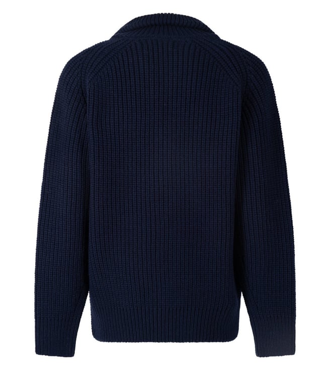 Dries Van Noten Navy Blue Zip High Neck Sweater