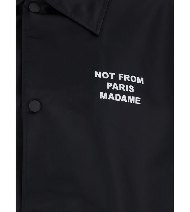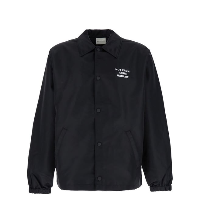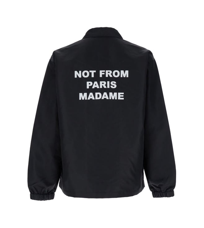 Elevate your style with the Drole De Monsieur Black Typography Regular Fit Jacket. Jacket classic collar long sleeves front buttons fastening mini front logo maxi front logo two front welt pockets elastic cuffs black techno fabric regular fit. Products purchased from Darveys are supported exclusively by the warranty/exchange policies of Darveys and its partner boutiques. Brand owners and their channel partners are not responsible for exchange/warranty services for items purchased through Darveys.