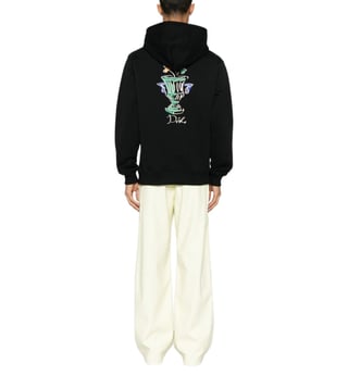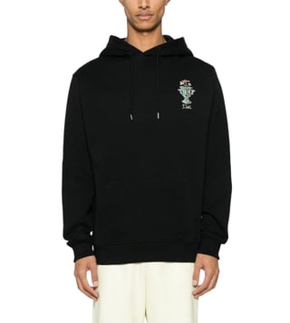 Elevate your style with the Drole De Monsieur Black Embroidered Sweatshirt. Black drawstring hood long sleeves front pouch pocket.