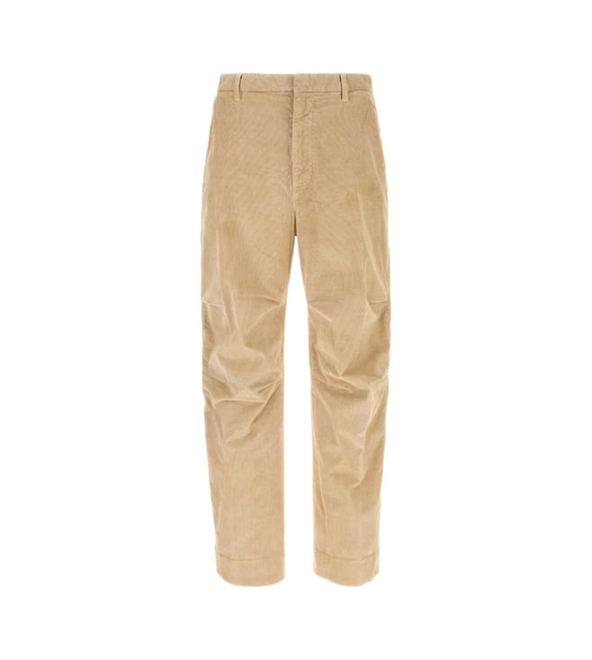 Elevate your style with the Dsquared2 Beige Relaxed Fit trousers. Pant realized in stretch cotton corduroy characterized by central ironed pleats. belt loops at the waist concealed zip and hook closure slant pockets and two slit pockets at the back Crafted for durability and comfort. Products purchased from Darveys are supported exclusively by the warranty/exchange policies of Darveys and its partner boutiques. Brand owners and their channel partners are not responsible for exchange/warranty services for items purchased through Darveys.